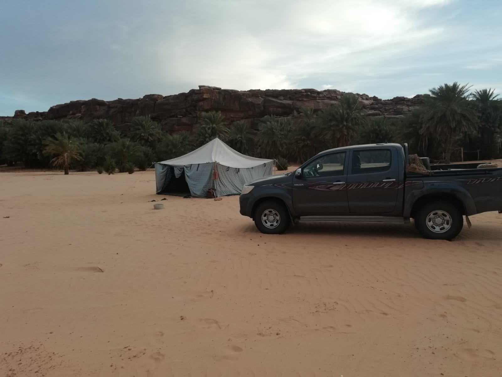 Pour sortir des sentiers battus (il n'y a pas que du sable), nous avons loué un pick-up Toyota Hilux. Il faut tout de même dégonfler les pneus pour passer sur du sable mou.