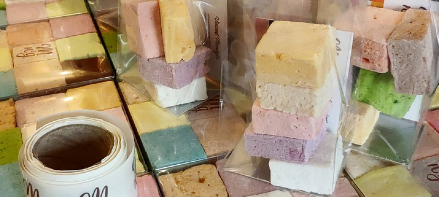 Les artisans confiseurs Vincent et Fanfan Moneger se sont installés en Anjou, au plus près des vergers propices à la création. Ensemble, ils ont créé le Mallow, un concept unique de «guimauve-macaron» et continuent depuis la création de leur entreprise en 2021, d’innover et de proposer de nouvelles créations artisanales.